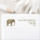 Etiqueta de endereço simples, moderna, elegante e de retorno branco com monograma e elefante de ouro, símbolo de amor, fertilidade e boa sorte.
