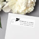 As etiquetas de endereço de retorno de chic em preto-e-branco exibem seus detalhes de endereço de retorno enfeitiçados por uma ilustração de plano de papel dobrado.
