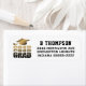 Etiquetas de endereço de retorno de graduação moderna para seus convites de formando, anúncios e cartões de agradecimento com duas tonalidades de tipografia empilhada em preto e ouro, boné de formatura e nome e endereço mostrados no estilo de fonte clássico em negrito ou esportivo que você pode mudar no EDIT. ASSISTÊNCIA: Para obter ajuda sobre modificação ou personalização do design ou se você quiser coordenar itens, entre em contato com o designer ANTES DE ENCOMENDAR, por meio da guia MENSAGEM de Bate-papo Zazzle ou por e-mail: makeitaboutyoustore@gmail.com.