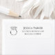 Essas etiquetas de endereço de retorno personalizadas contêm um anel de noivado de diamante branco com bandeja prateada com espaço para adicionar seu próprio nome e endereço. Perfeito para todas as suas necessidades de casamento e noivado!