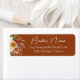 Etiquetas de endereço de devolução de convite de chá de panela de noiva com flores de outono em terracota.