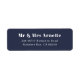 Uma etiqueta simples, mas moderna, projetada para seus envelopes RSVP. Edite facilmente o texto para os detalhes desejados. A cor de fundo também pode ser editada se desejar. Digite a ferramenta design do Zazzle e selecione outra cor usando a ferramenta selecionador de cores. O azul desta etiqueta corresponde aos itens da nossa "Suíte de Casamento de Boho Azul-Marinho". Rótulo de Endereço de Retorno Moderno Simples.