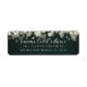 As etiquetas de endereço de retorno elegantes e luminosas apresentam um rico fundo verde de caçador pontilhado com luzes de anzol de champanhe. Personalize com seu endereço de retorno em letras brancas.