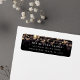 As etiquetas de endereço de retorno elegantes adicionam um toque de vírgula aos seus convites ou envios. Etiquetas negras ricas apresentam seu endereço de retorno em letras brancas com cordas de luzes de fada de ouro no topo.