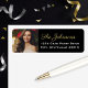 Design de etiqueta de endereço personalizada simples e elegante apresenta uma fotografia de mais velho do seu formando com texto de endereço de retorno em ouro e branco e fundo preto. As cores podem ser personalizadas.