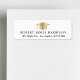 Etiqueta de endereço de retorno de graduação branca elegante, com um boné de formando de ouro e o nome e endereço do formando em caracteres modernos.