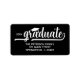 As etiquetas de endereço de retorno preto de na moda apresentam um boné de formando, o ano de sua classe, a palavra "Formando" em letras brancas quic e seu nome e endereço. O toque perfeito para seus convites de formatura, anúncios e outros envios. CORRESPONDENTE a itens na nossa coleção.