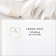 Um fundo branco. Decorado com um arco simples de ouro falso. Personalize e adicione seu nome e endereço. Letras negras.