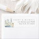 Painterly e chic, esta etiqueta de Endereço de Devolução apresenta um emparelhamento de fontes moderno próximo a uma bela pintura aquosa da linha do horizonte de Nova Iorque. suite de casamento correspondente ao cheio disponível.