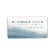 Nossas etiquetas de endereço de devolução de chic costeiro apresentam uma lavagem com cor-de-água pura em azul-marinho rico que evoca a borda e o fluxo da maré. Adicione seus detalhes de endereço em cinza e letras azuis marinhas. Coordena-se com a nossa suíte de convites para o casamento das Marés do Oceano, disponível na coleção nesta página.