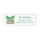 Etiquetas de Endereço de Retorno de Praia Este design de praia divertido inclui palmeiras e cadeiras de salão na areia. Personalize o rótulo do endereço com suas próprias informações. Visite nosso compro para coordenar acessórios.