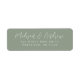 Etiquetas simples de endereço de retorno de casamento com seus nomes em um roteiro branco elegante com um fundo verde sábio. Personalize as etiquetas de endereço de volta do casamento moderno com o seu endereço. Projetado para coordenar com nossa coleção de casamento Simple Script.
