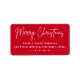 O Red Christmas retorna etiquetas de endereço com texto branco "Feliz Natal" em uma fonte de estilo manuscrito e seu nome e endereço de retorno abaixo.