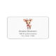 Etiquetas de endereço com uma ilustração de um adorável veado bebê. Olhos grandes orelhas com cabeça grande e pequenos galhos castanhos. Vestindo um grande arco vermelho.
