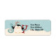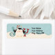 Design de Natal bonito com um adorável e feliz pinguim com um boné de estocagem, jingle bell, cana doce e ornamento. Pequeno pinguim é o "O" na palavra JOY. Personalize-o com seu próprio texto personalizado. PinkInkArt original!