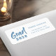 Design de script de pincel moderno em azul empoeirado, simples e exclusivo. simples e exclusivo. Rótulo de endereço de retorno personalizado do excelente para festa de formatura.