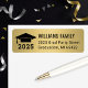 O design de etiqueta de endereço personalizado moderno apresenta um boné de formando preto com etiqueta, ano de classe, texto de endereço de retorno e fundo digital em ouro brilhante que pode ser personalizado para corresponder a qualquer cor de escola ou convite.