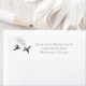 Este design de etiqueta de endereço bonito apresenta um casal de pássaros voando sobre belos esboços simples de uma ramificação florida. Esta design de jardim encantadora é feita em cinzas e branco.