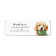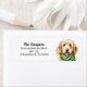 A etiqueta de endereço de Doodle, Ouro de feriado, mostra uma arte de cão de um goldenodle vestindo um cachecol de inverno.