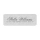 Etiquetas de endereço de retorno elegantes com seu nome em uma fonte elegante de script de caligrafia e o endereço abaixo em um fundo de linha de cinza luminosa IMPRESSA.