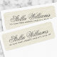 Etiquetas de endereço de retorno elegantes com seu nome em uma fonte elegante de script de caligrafia e o endereço abaixo em um plano de fundo de roupa de marfim IMPRESSO.