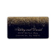 Etiqueta de endereço moderno azul naval com confete dourado. Bela e simples confete dourado com glamour vintage contra um fundo azul naval. Este design moderno personalizado pode ser facilmente personalizado com seus próprios detalhes.