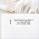 Elegantes etiquetas de endereço de devolução com uma cruz cristã fina preta moderna, seu nome e seu endereço de devolução.