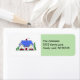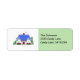 Uma casa única com um telhado azul e uma porta vermelha destacada nesta etiqueta de endereço. Personalize com todas as suas próprias informações.