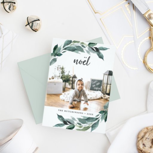 Elegante e festivo, nossas etiquetas de endereço de volta de feriado apresentam uma coloração aquosa verde pintada, moldando seus detalhes de endereço de retorno em chic off-black.