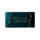 Esta elegante etiqueta de endereço RSVP de casamento moderna apresenta uma cor azul-lacrimejante agata de fundo com brilho de ouro falso. O texto personalizável combina o script de escrita manual dourada e as fontes de impressão em papel.