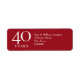 RÓTULO DO ENDEREÇO RUBY ANIVERSÁRIO DO 40º ANIVERSÁRIO DO CASAMENTO. Data do aniversário, nome e endereço definidos em texto branco elegante sobre fundo vermelho rubi.