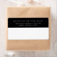 Etiquetas minimalistas de envio com o seu nome comercial e duas linhas de texto para o seu endereço de retorno em uma fonte sans serif moderna, em branco, sobre um fundo preto. Abaixo está um espaço em branco onde você pode escrever manualmente o endereço do seu cliente. Um design básico e simples que ainda aparece como na moda. Estas etiquetas de envio são uma forma excelente de adicionar um toque profissional aos seus pacotes.