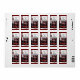 Etiqueta de identificação de pratos, pratos, potes e painéis, personalizados, com uma pilha de produtos domésticos no carrinho de cozinha tradicional em vermelho e castanho. Vintage 50, dona de casa em avental e blusa vermelha empurra carrinho para o jantar da igreja.