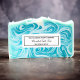 Etiqueta de estilo vintage para produtos de banho e de cuidados ao corpo com texto preto sobre fundo branco.