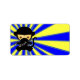 Macaco de desenho vestido como ninja com fundo amarelo e azul brilhante. sgb01