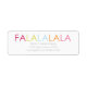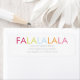 Este design apresenta "FA LA LA LA LA" em tipografia colorida sobre fundo branco. Seu nome e endereço estão definidos abaixo