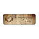 Etiquetas de endereço de chic da casa de fazendeiros com uma silhueta marrom cercando a letra do monograma da sua família em marrom. O fundo é um impressão de tábuas de madeira marrom.