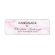 Um rótulo para seus produtos feitos à mão ou arte. Personalize e adicione seu nome e endereço de site. Impressão de pedra-de-mármore rosa embebida como fundo, texto preto.