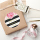 Chá de fraldas favorece adesivos de etiquetas no padrão de listras preto e branco com flores cor d'água rosa e texto dourado. Uma maneira excelente de decorar favores do chá de fraldas.