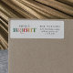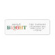 Estas felizes coloridas e as etiquetas brilhantes do endereço de volta de Natal são perfeitas para um cartão ou convite de férias moderno. O simples design apresenta uma tipografia fofa e divertida com letras coloridas alternadas em vermelho, cor-de-rosa-claro, verde-esmeralda, verde-pastel e ouro amarelo.