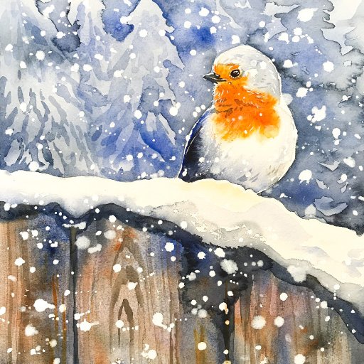 Linda cor d'água Robin do Natal pela artista Zaira Dzhaubaeva.