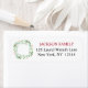 Rótulo mostra uma coroa circular verde de louros com morangos vermelhos. O nome está no texto cheio-boné em vermelho. O endereço é preto. Personalize e personalize o nome e endereço. Excelente para letras, envelopes, pacotes e anexação a itens, caso eles se percam. Design moderno, elegante e limpo.