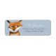 uma etiqueta de natal de natal doce e moderna, com uma raposa pintada à mão sobre fundo azul. Arte original de Caroline Bonne Müller