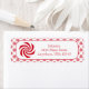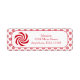 Esta etiqueta de endereço de retorno apresenta texto vermelho em uma fonte decorativa próxima a uma espiral redonda vermelha e branca de menta-pimenta sobre um fundo de espirais de doces de menta em um padrão de estilo polka-dot. Personalize esta etiqueta de Feriado de Natal com seu próprio nome e endereço ou mensagem personalizada. Você Também Pode Gostar: