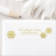 Bold e moderno Shimmering Chic Snowflake Holiday Labels com um modelo fotográfico flanqueado por flocos de neve vibrantes e elegantes ouros. Essas etiquetas contemporâneas são fáceis de personalizar com um nome e endereço. Clique em "Personalizar" para encontrar opções adicionais de personalização.