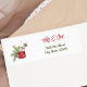 Esta etiqueta de folhagem de férias tem um estilo de arte folclórica nórdico, ilustração de uma caneca vermelha de cacau quente, biscoitos de Natal com flocos de neve e galhos verdes, junto ao seu nome e endereço em texto vermelho e verde em branco. Perfeito para todas as suas cartas, cartas, cartas e pacotes de inverno. Cartão de Natal correspondente disponível.