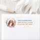 O lado esquerdo destas etiquetas de endereço de retorno apresenta uma imagem de uma coroa de primavera em cores de rosa mole, azul, dourado, verde e creme. No centro está um belo retrato de aquarela de um cão Basset Hound. Pequeno confete de ouro dá um brilho sutil ao fundo. Seu texto personalizado está em ouro azul e marrom à direita.