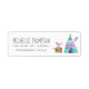 Etiquetas de endereço de Camping Party com elementos de acampamento com acentos geométricos.