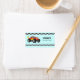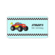 Vroom! Um rótulo com um caminhão de monstro vermelho de corrida feroz com chamas ao lado! Elementos de sinalizador de verificação em preto e branco. Um design legal e colorido de corrida que é excelente como etiqueta para os favoritos para festas e caixas de presentes para seus filhos convidados em uma festa de corrida!