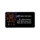 A etiqueta de Ano Novo do Fireworks apresenta fogos de artifício coloridos brilhantes em um fundo preto rico. Os produtos correspondentes também estão disponíveis. © Manhã 6